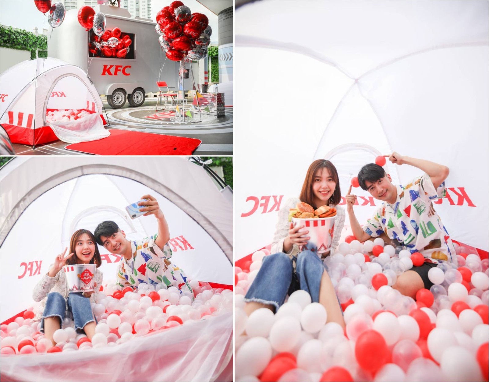 野营帐篷内铺满了海洋球,还有星空灯,让人感受到浪漫和梦幻。逛街累了,来帐篷小憩,和朋友一起躺在帐篷里,玩玩自拍,感受浪漫、梦幻的氛围。肯德基的这个都市野营体验,让身处钢筋混凝土城市的人们感受到了别样的野营,享受到了不一样的周末时光。