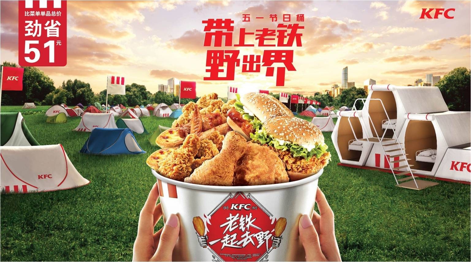 肯德基这次利用“节日”“老铁”“去野”这三个年轻群族关注的关键词,制造话题,强化品牌活力的时尚感。希望大家能找一个适合外出的好时机,和朋友相聚在一起,去户外,看LIVE,野餐,赏玩,露营,拉近彼此距离,认识更多朋友。在产品方面,肯德基推出了能和朋友一起分享的超值五一节日桶;同时,肯德基还在全国17个城市的17家指定肯德基餐厅,提供了城市野营限时体验,更在上海环球港南广场展开了一场别开生面的户外黑科技体验,让老铁们能和自己的朋友拉近距离,一起去野。